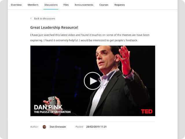 The Personalised Dashboard contains ‘to do’ lists, courses, recommended resources based on your activity and interests, announcements and upcoming events – it’s your jump-off point into the platform.